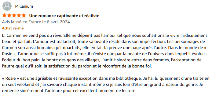 Elle, c'est Rosie, jolie quadragénaire divorcée avec deux enfants reconvertie dans la vente de baguettes et de viennoiseries. Petite aux formes généreuses, une langue bien pendue, elle perd facilement ses moyens face à une certaine catégorie de personnes. L’une d’elle en particulier...