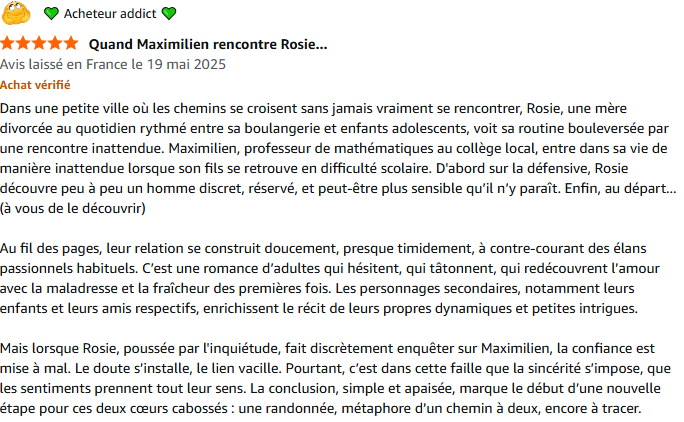 Lui, c'est Maximilien, un professeur de mathématiques de 43 ans récemment débarqué dans la région avec sa fille, Faustine, et son golden retriever. Grand amateur de chouquettes, au physique avantageux, il a tout pour plaire. Si ce n'est son attitude hautaine envers Rosie.